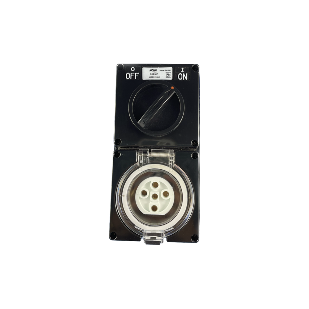 MYW SWITCH SOCKET OUTLET 5 ROUND PIN 20A 500V IP66 BLACK